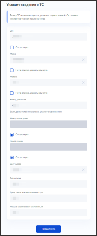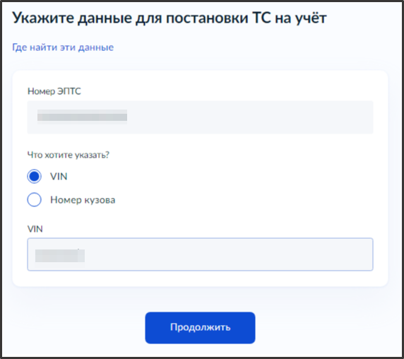 - Сведения о ТС из электронного паспорта (ЭПТС)