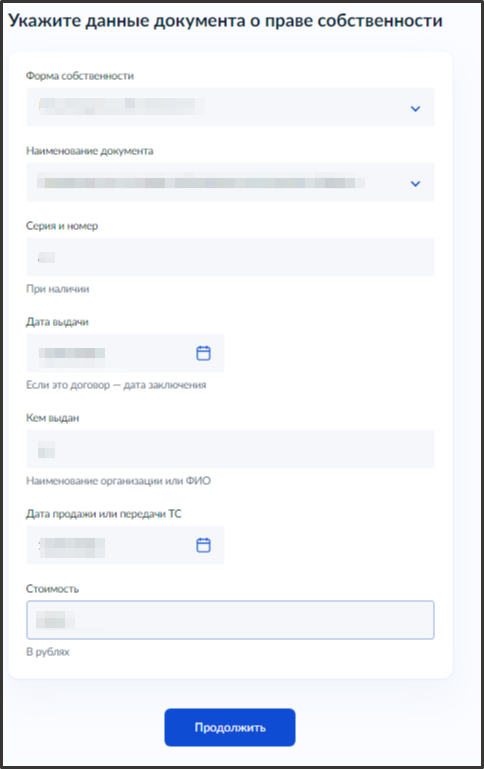 - Данные документа, подтверждающего право собственности, например договора купли-продажи