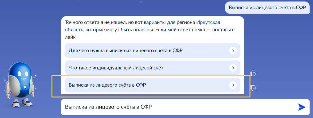 Введите запрос Роботу Максу: "Выписка из лицевого счёта в СФР"