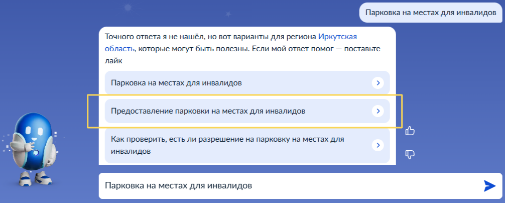 Введите запрос Роботу Максу: "Парковка на местах для инвалидов"