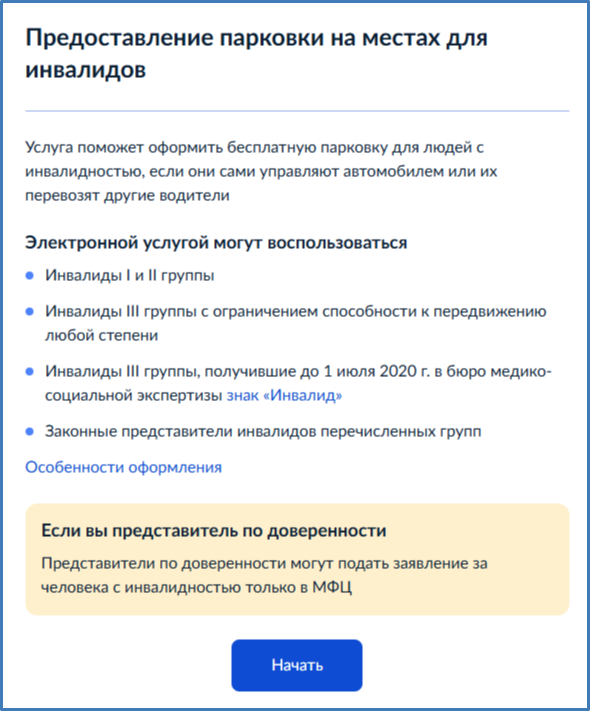Услуга поможет оформить бесплатную парковку для людей с инвалидностью, если они сами управляют автомобилем или их перевозят другие водители