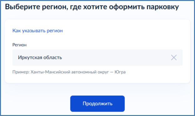 2. Указать регион, в котором планируете парковать автомобиль