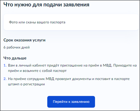 Результат - регистрация по месту жительства (штамп в паспорте). Вам в личный кабинет придёт приглашение на приём в МВД. На приёме сотрудник МВД проверит ваши документы и поставит в паспорте штамп о регистрации.