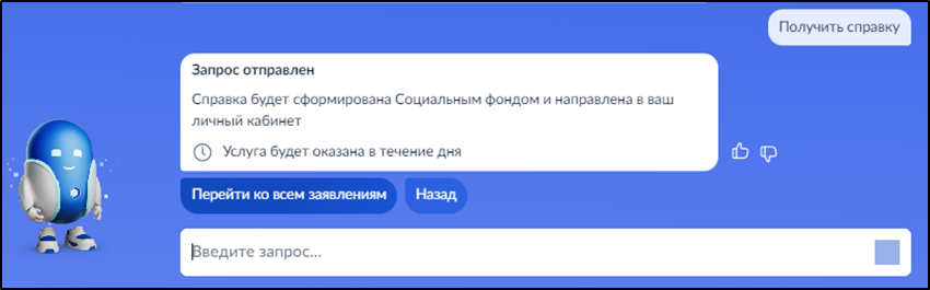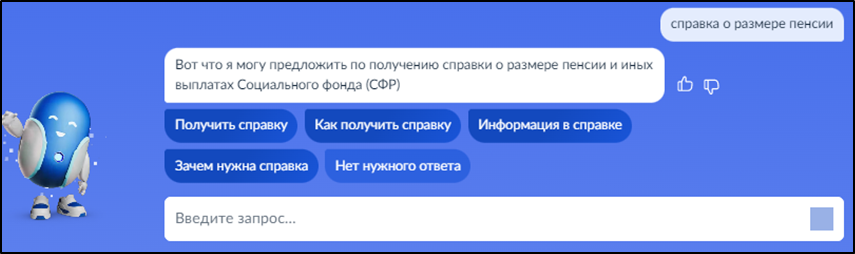 Введите запрос Роботу Максу: «Справка о размере пенсии" в случае получения справки на текущую дату