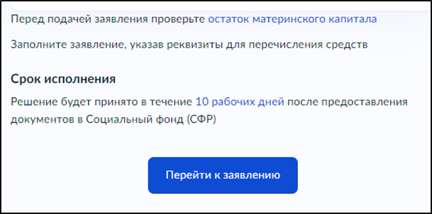 Срок предоставления услуги - заявление будет рассмотрено в течение 10 рабочих дней— уведомление о решении придёт в личный кабинет. Деньги перечислят в течение 5 рабочих дней после этого