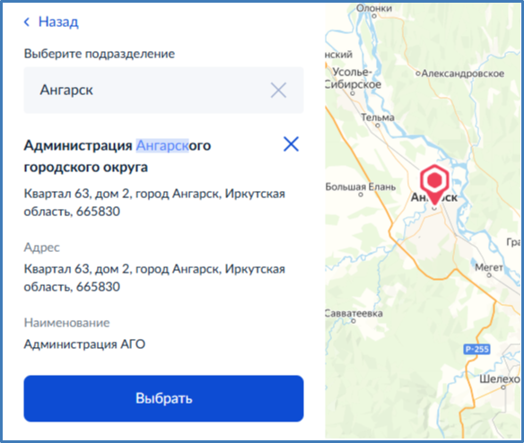 Подразделение можно выбрать из списка или внести название в поисковую строку: