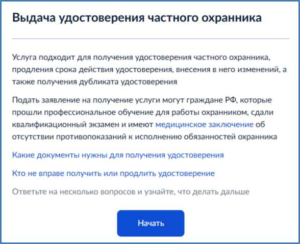 Результат - Если заявление заполнено правильно и представленные документы соответствуют требованиям, в ваш личный кабинет придёт приглашение в подразделение Росгвардии на получение удостоверения. В зависимости от результатов проверки ведомство может попросить принести оригиналы или дополнительные документы, не указанные в перечне