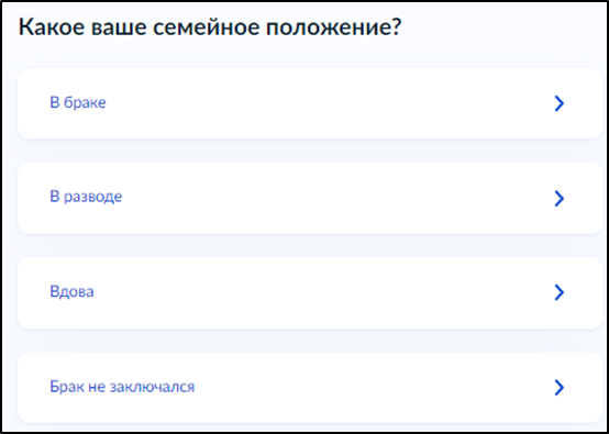 Далее выберите свое семейное положение: