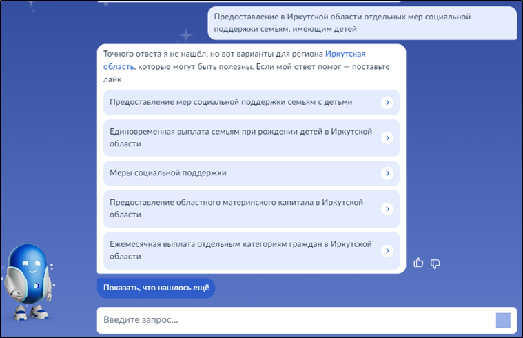 Введите запрос Роботу Максу: "Предоставление в Иркутской области отдельных мер социальной поддержки семьям, имеющим детей":