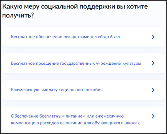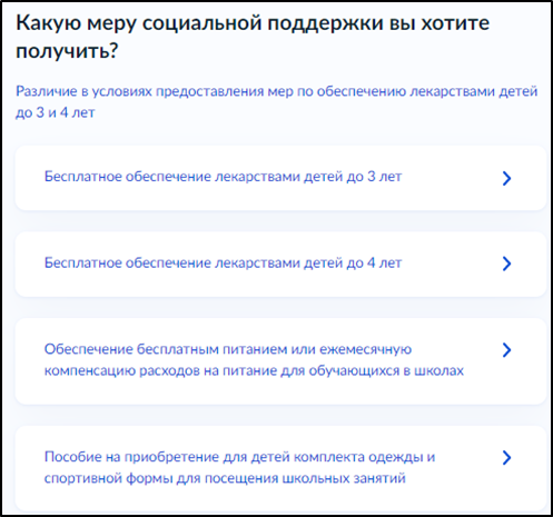 - Дополнительные сведения, в зависимости от меры соц.поддержки