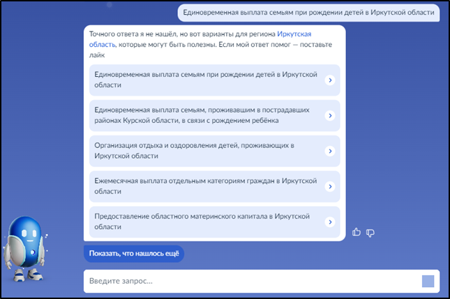 Введите запрос Роботу Максу: "Единовременная выплата семьям при рождении детей в Иркутской области":