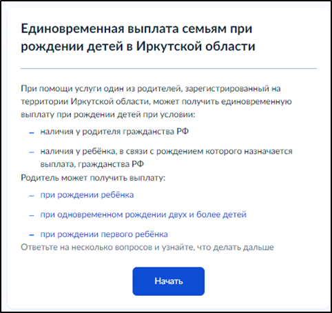 Выберите из предложенных вариантов "Единовременная выплата семьям при рождении детей в Иркутской области".