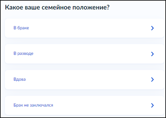 *В зависимости от семейного положения, вам будут предложены дополнительные вопросы.