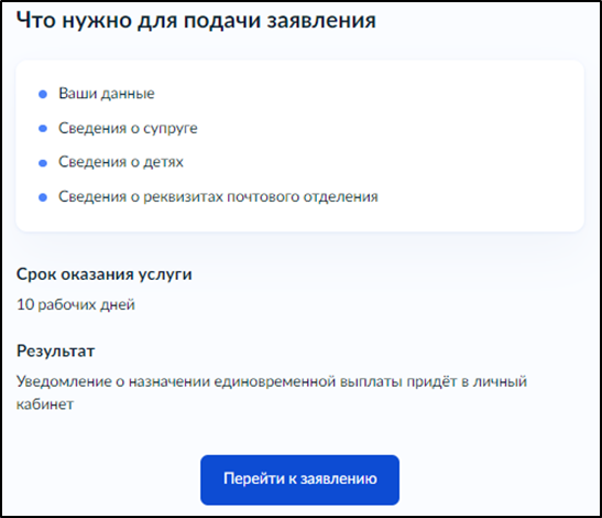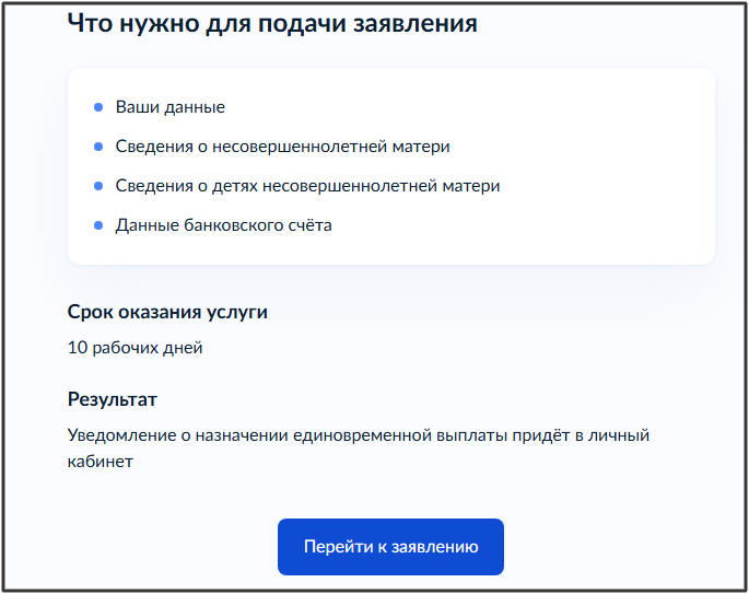 Срок предоставления услуги - заявление будет рассмотрено в течение 10 рабочих дней