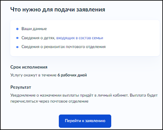 Срок предоставления услуги - заявление будет рассмотрено в течение 6 рабочих дней