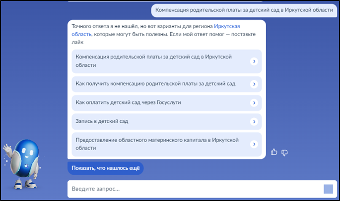 Введите запрос Роботу Максу: "Компенсация родительской платы за детский сад в Иркутской области":