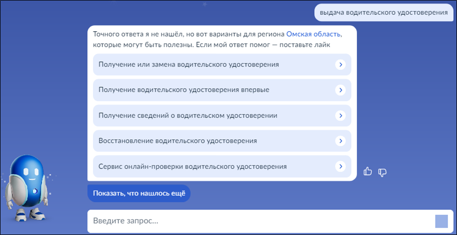 Введите запрос Роботу Максу: выдача водительского удостоверения