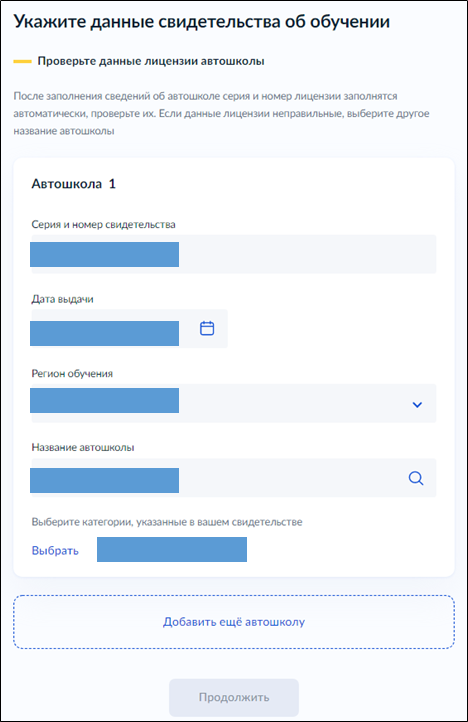 Далее Максом, будет предложены варианты, из которых нужно выбрать "Получение водительского удостоверения впервые"