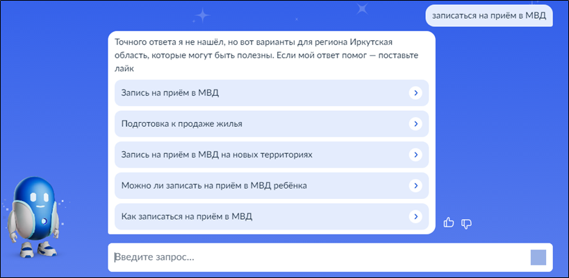 1. Введите запрос Роботу Максу: Запись на приём в МВД