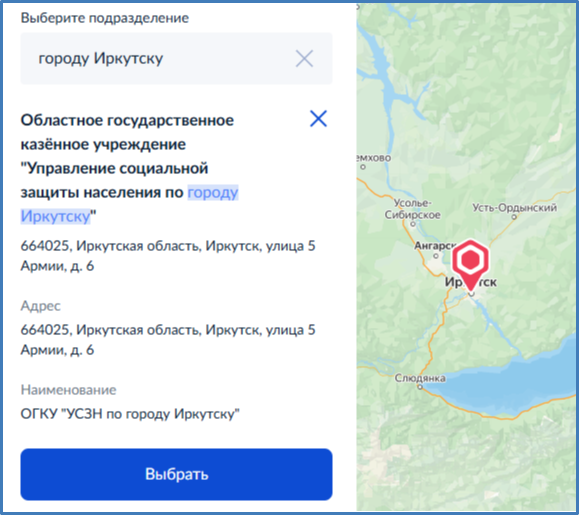После выбора подразделения ведомства, заявление будет направлено в соцзащиту