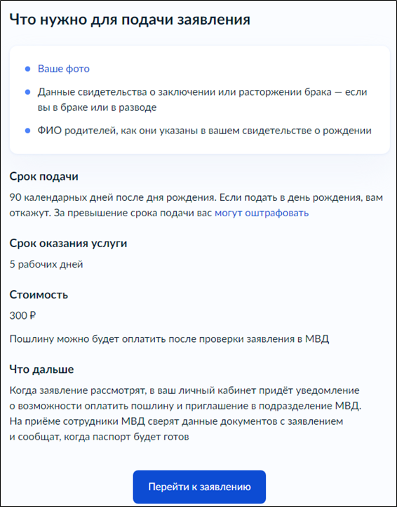 3. Ознакомьтесь с информацией в разделе "Что нужно для подачи заявления"