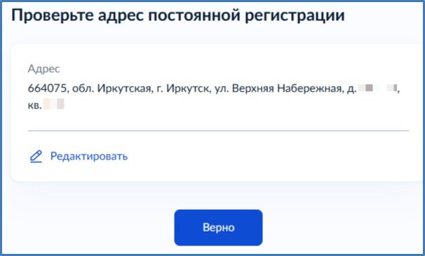 При необходимости уточнить данные, если адрес актуальный, нажать кнопку "Верно"