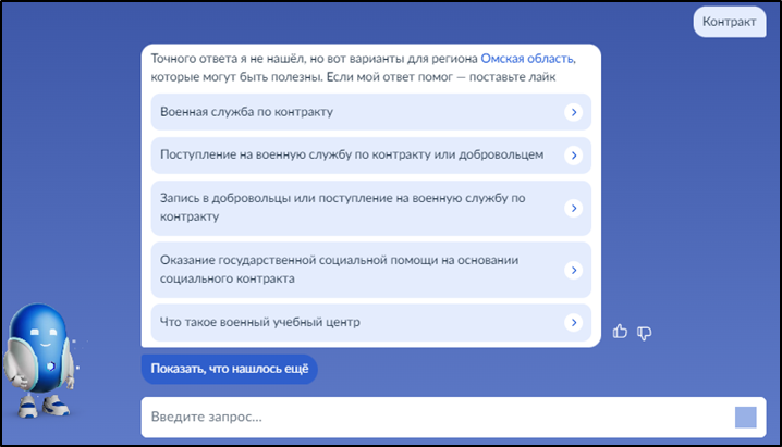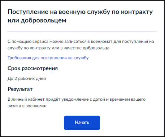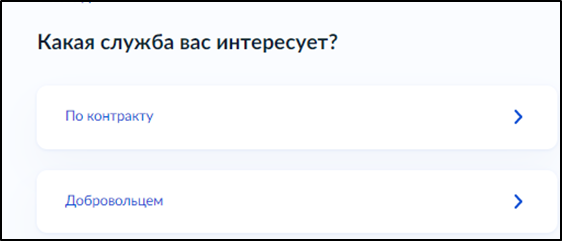 Далее выберите услугу "Поступление на военную службу по контракту или добровольцем"