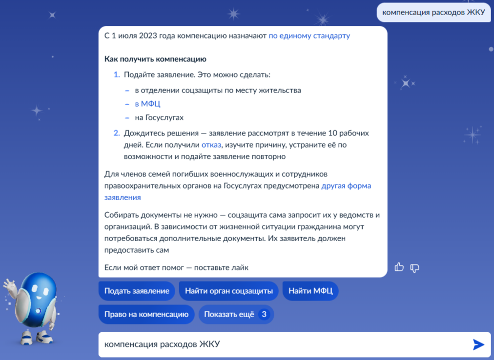 введите запрос Роботу Максу: "компенсация расходов ЖКУ"