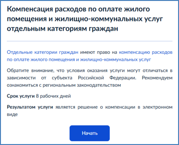 Далее Макс предложит ознакомится с информацией и нажать кнопку - Подать заявление. Либо Максом, будет предложена услуга, которую необходимо выбрать "Компенсация расходов по оплате жилого помещения и жилищно-коммунальных услуг отдельным категориям граждан"