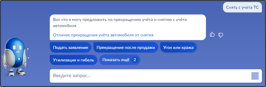 Введите запрос Роботу Максу: "Снять с учета ТС"