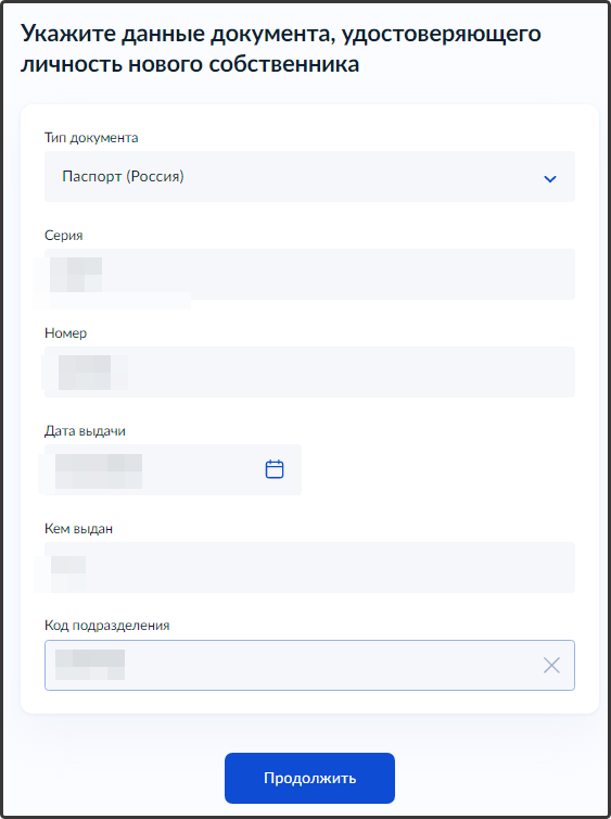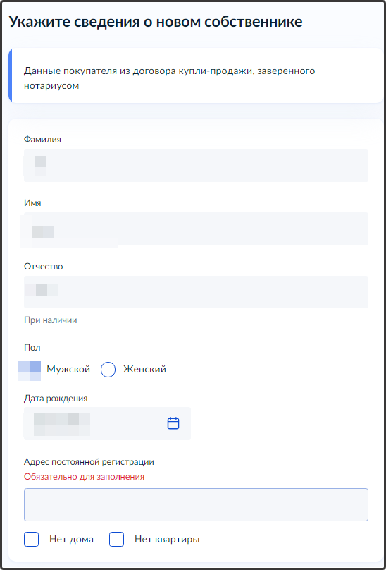 - Сведения о новом собственнике