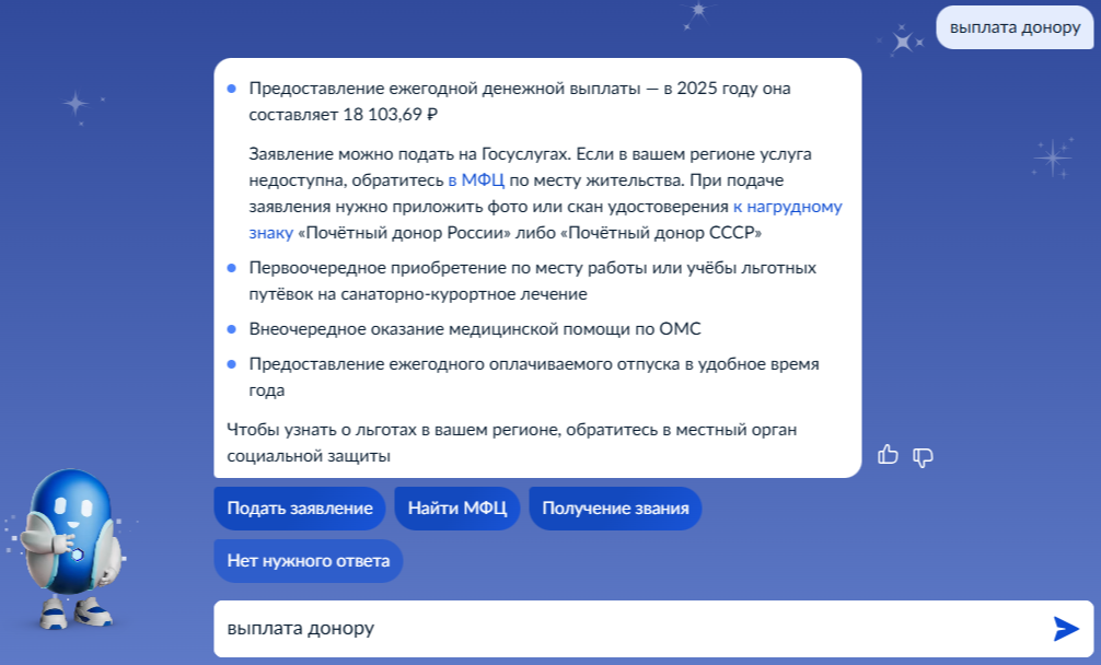 Результат - Решение о предоставлении ежегодной денежной выплаты придёт в личный кабинет портала Госуслуг.