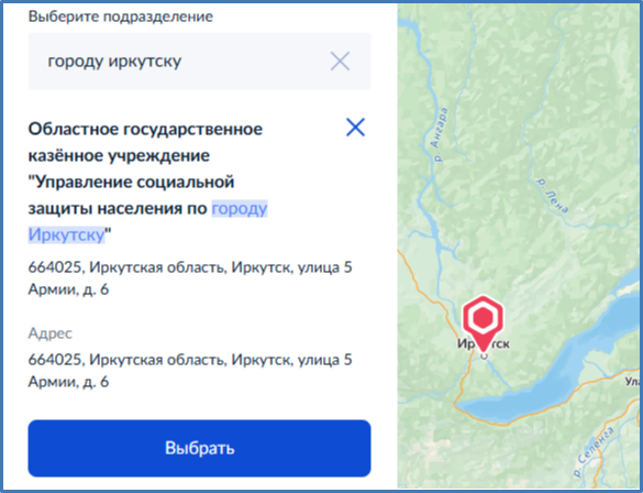 Услугу предоставляет - Министерство социального развития, опеки и попечительства Иркутской области (соцзащита)