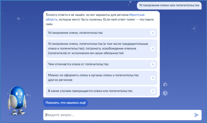 введите запрос Роботу Максу: "Установление опеки или попечительства"