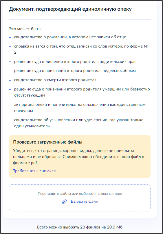 - Фото или сканы акта о назначении вас опекуном детей, если вы им являетесь