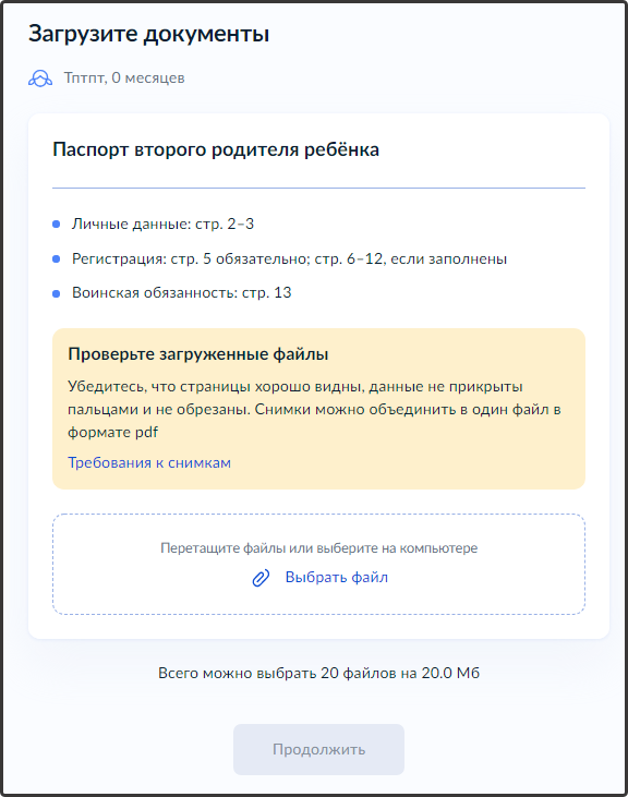 - Фото или сканы паспорта второго родителя или иного законного представителя регистрируемых детей. Если его нет — документ, подтверждающий единоличную опеку.