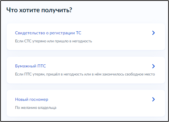 При выборе "Свидетельство о регистрации ТС" или "Бумажный ПТС", ответьте на вопрос: