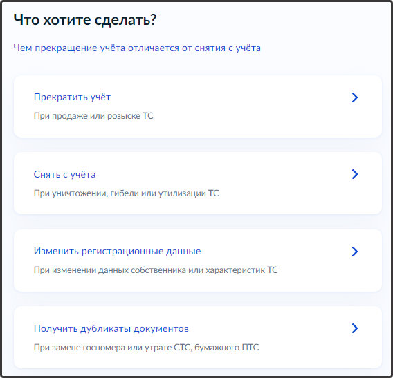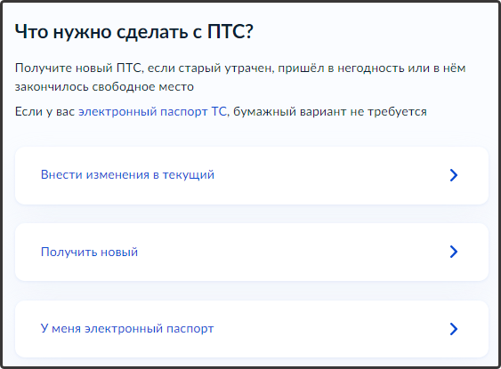 7. Выберите, что нудно сделать с ПТС: