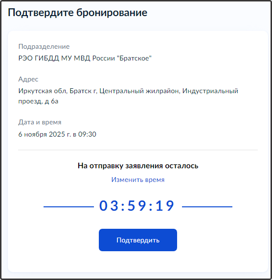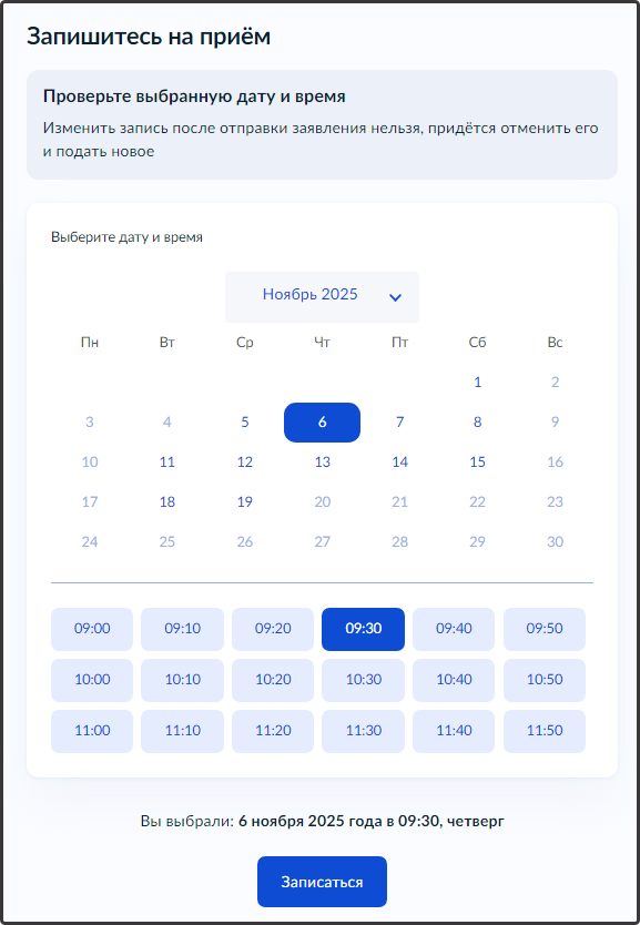Нажмите кнопку "Записаться" и подтвердите бронирование: