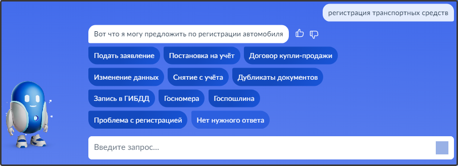 - Введите запрос Роботу Максу: "Регистрация транспортных средств"